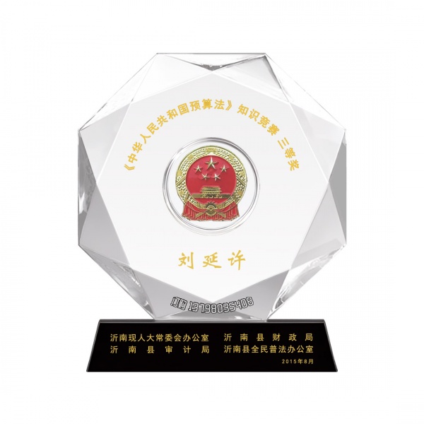 水晶獎杯,水晶獎杯工藝品,水晶工藝品禮品,晶瑩剔透,高貴典雅,永 不變質,象征著永恒和持久,她能帶來幸運與成功,長期以來一直倍受人們的鐘愛。制作一份帶有鮮明形象標示,適合于促銷業務、商務往來、室內裝飾、會議慶典,紀念留念等多類場合可為各大市政機關和企業單位刻上單位名稱和企業LOGO饋贈的水晶工藝品是您的上乖之選。